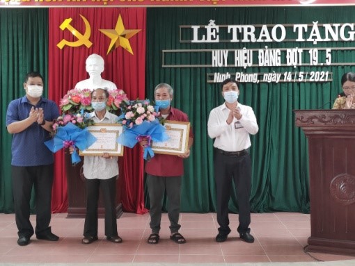 Nhân kỷ niệm 131 năm ngày sinh của Chủ tịch Hồ Chí Minh (19/5/1890 – 19/5/2021), Đảng ủy phường Ninh Phong tổ chức lễ trao Huy hiệu Đảng cho 8 đồng chí Đảng viên từ 30 năm tuổi đảng đến 65 năm tuổi đảng thuộc chi bộ phố Phong Đoài, Vân Giang, Nam Phong, An Lạc, An Hòa.
